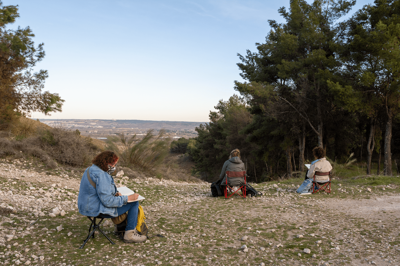Después de casi un año adaptando nuestras actividades a la situación creada por la pandemia, hemos recuperado una de las más gratificantes: el dibujo al aire libre. El viernes 19 de febrero, aprovechamos el ambiente primaveral para desplazarnos a la zona del puente sobre el río Manzanares —al que se llega desviándonos a la izquierda del camino de Salmedina, nada más pasar junto a la Escuela Nacional de Protección Civil—, y a los pinares de Casa Eulogio, con acceso desde el camino de la Aldehuela, ambos espacios ubicados en el término municipal de Rivas Vaciamadrid.