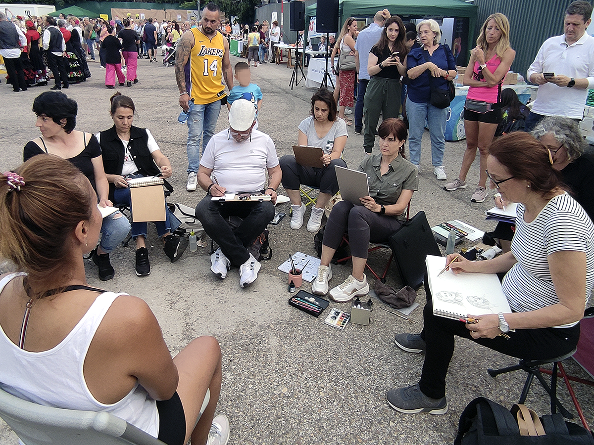 El aula abierta de dibujo y apuntes del natural participó el pasado sábado 10 de junio, en la fiesta de la Casa de asociaciones de Rivas Vaciamadrid. Durante unas horas, hicimos retratos en quince minutos a las personas que se prestaron a posar. Los improvisados modelos se llevaron la mayoría de sus retratos como recuerdo, y uno de los marcapáginas exclusivos diseñados por Arturo Ledrado para Prima Littera.
