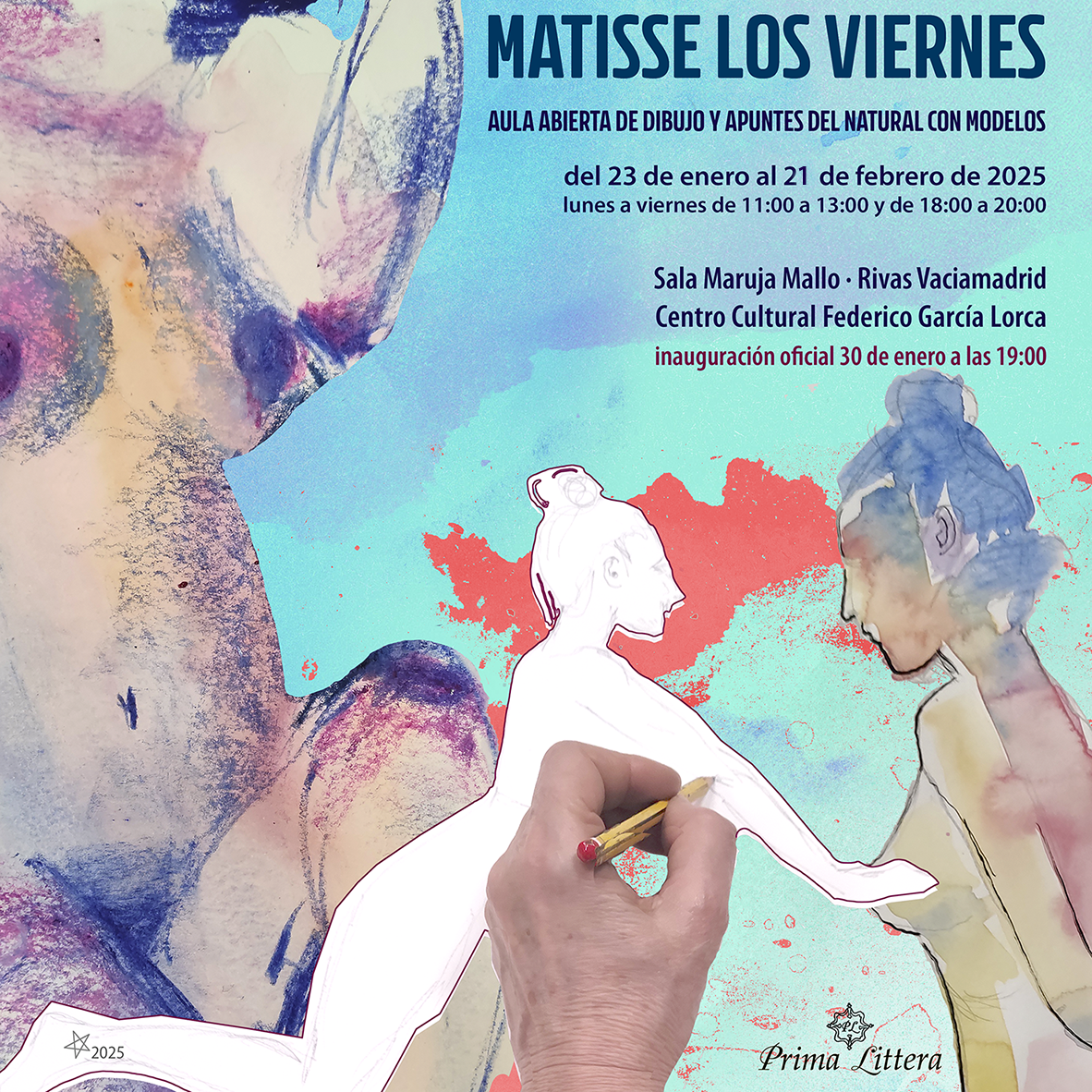 El aula abierta de dibujo y apuntes del natural con modelos de la asociación cultural Prima Littera presenta una selección de dibujos bajo el epígrafe Matisse los viernes. El título hace referencia al maestro francés y al día de la semana en que se reúne el aula en el Centro Cultural Federico García Lorca.