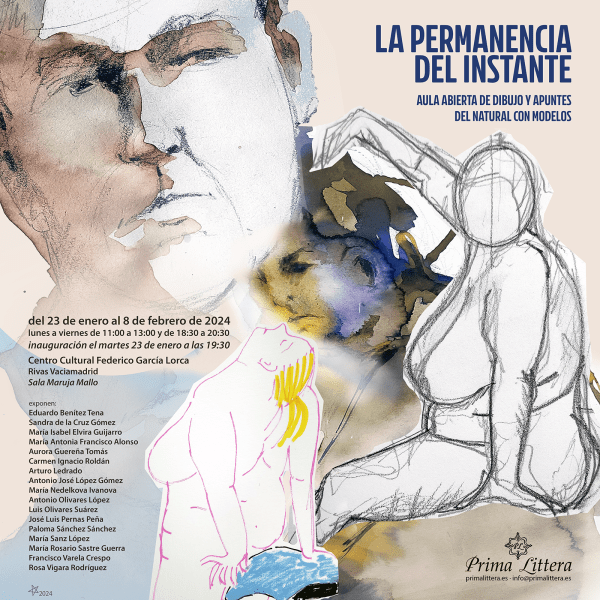 En la muestra colectiva La piel del Arte, que del 14 de marzo al 7 de abril de 2022 se podrá visitar en el Centro Cultural Federico García Lorca, el aula abierta de dibujo y apuntes del natural de Prima Littera presenta varias series de apuntes con modelos masculinos y femeninos, retratos, bocetos, collages y... Leer más →